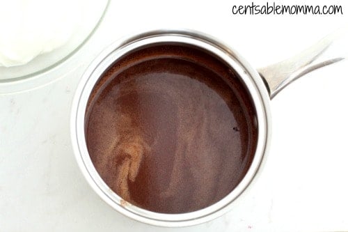 - In a small saucepan on medium heat, add milk and chocolate. Stir until chocolate melts into a smooth sauce.
