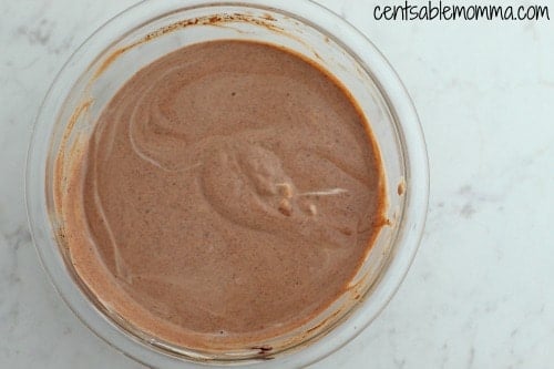 - In a medium sized bowl, add Greek yogurt and slowly pour the chocolate mixture over the top. Stir until incorporated. Cover bowl with plastic wrap and place in the fridge to chill for 2 hours.