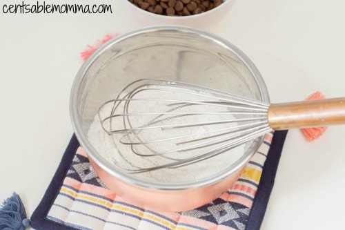 - In a medium-sized bowl, sift together dry ingredients: flour, baking powder, baking soda and salt.