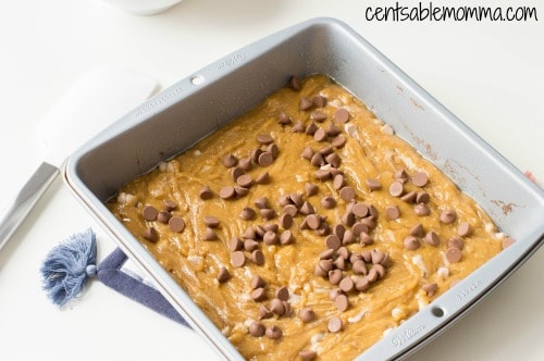 - Sprinkle the top of the batter with chocolate chips and place in oven for 3 minutes.
