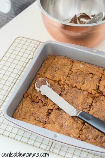 - Frost the blondies with an offset spatula. Cut brownies and serve, enjoy!